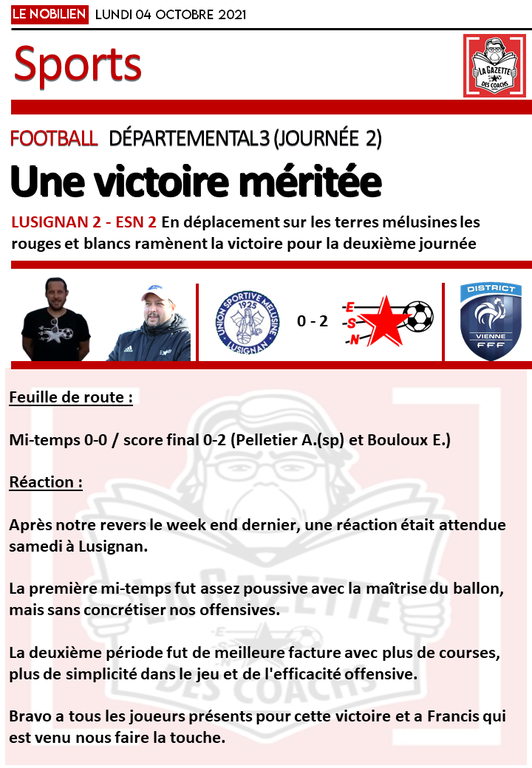 LA GAZETTE DES COACHS DU 04/10