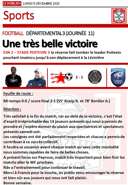 LA GAZETTE DES COACHS DU 13/12