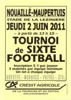 Le traditionnel Tournoi de Sixte de l'ESN s'est déroulé le Jeudi 2 Juin 2011. Cette année, le Tournoi n'a vu qu'une vingtaine d'équipe s'affronter sur le Stade de la Lézinière. Merci à ceux et à celles qui ont participer.