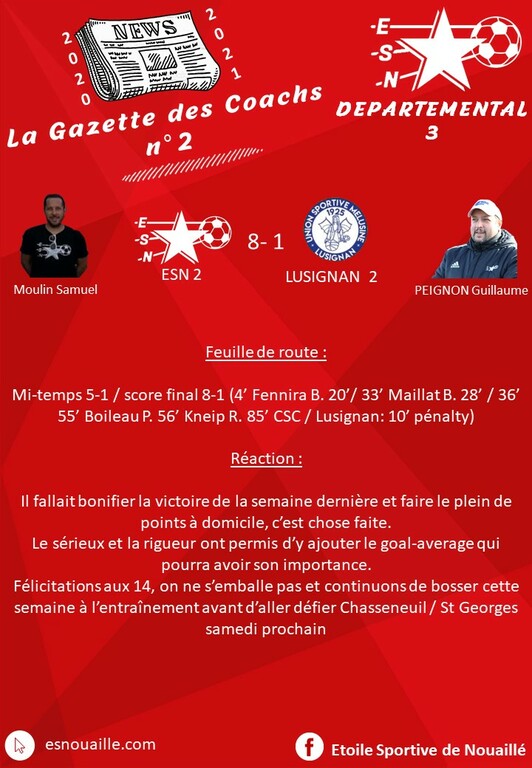 Seul le groupe 2 était sur le pont ce week-end en recevant la réserve de Lusignan à la Lézinière et les spectateurs venus braver la pluie ont pu apprécier un déluge de buts pour cette deuxième journée de championnat.